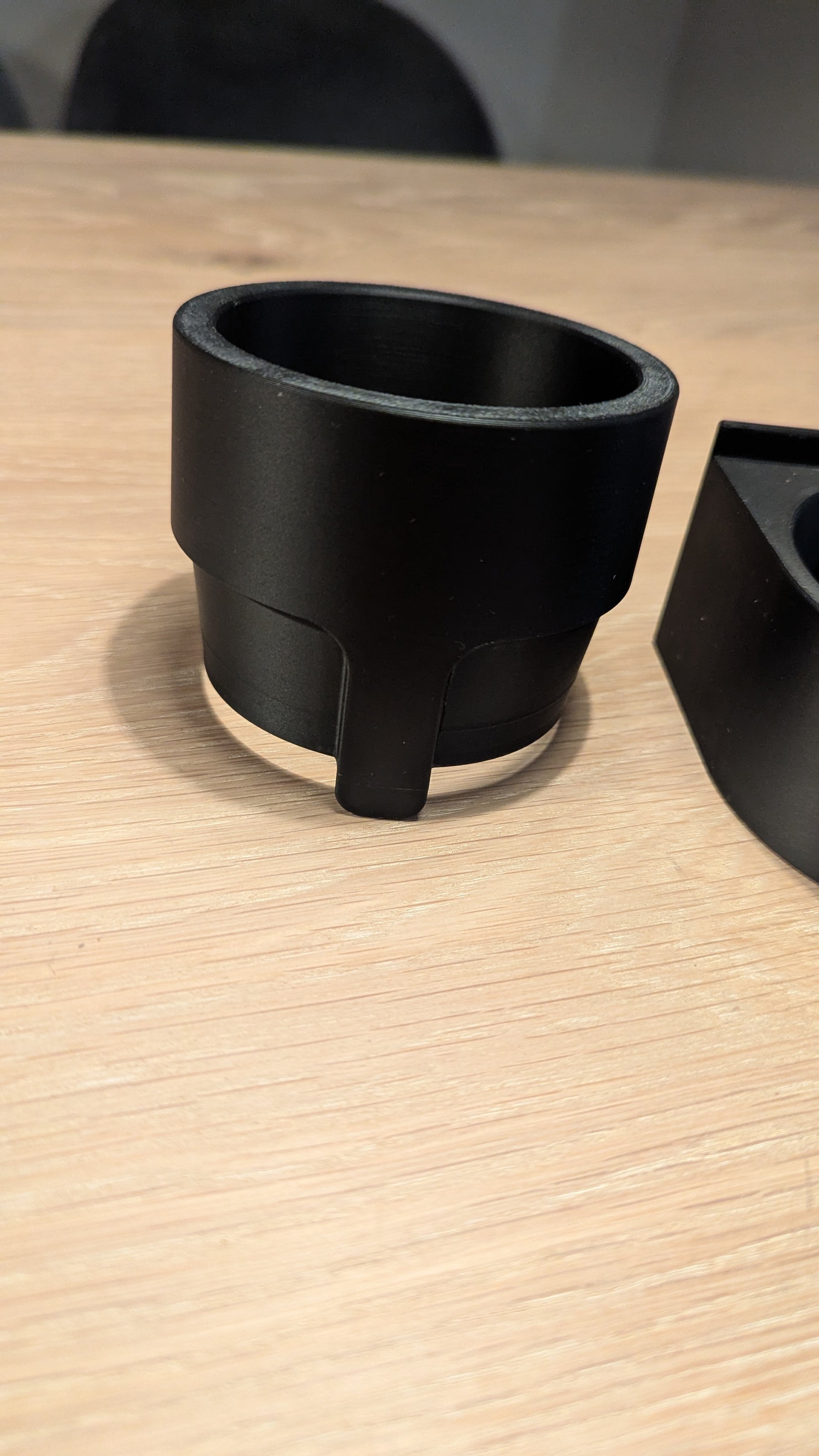 Mugghållaren tillverkad i PLA matt svart. Krokar PETG.